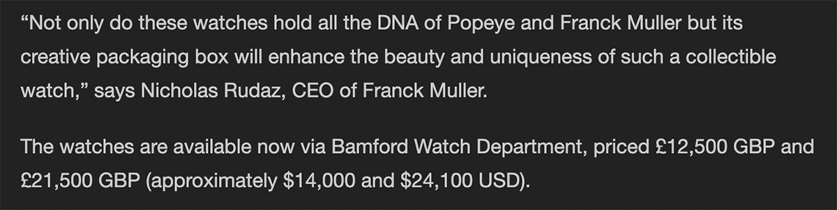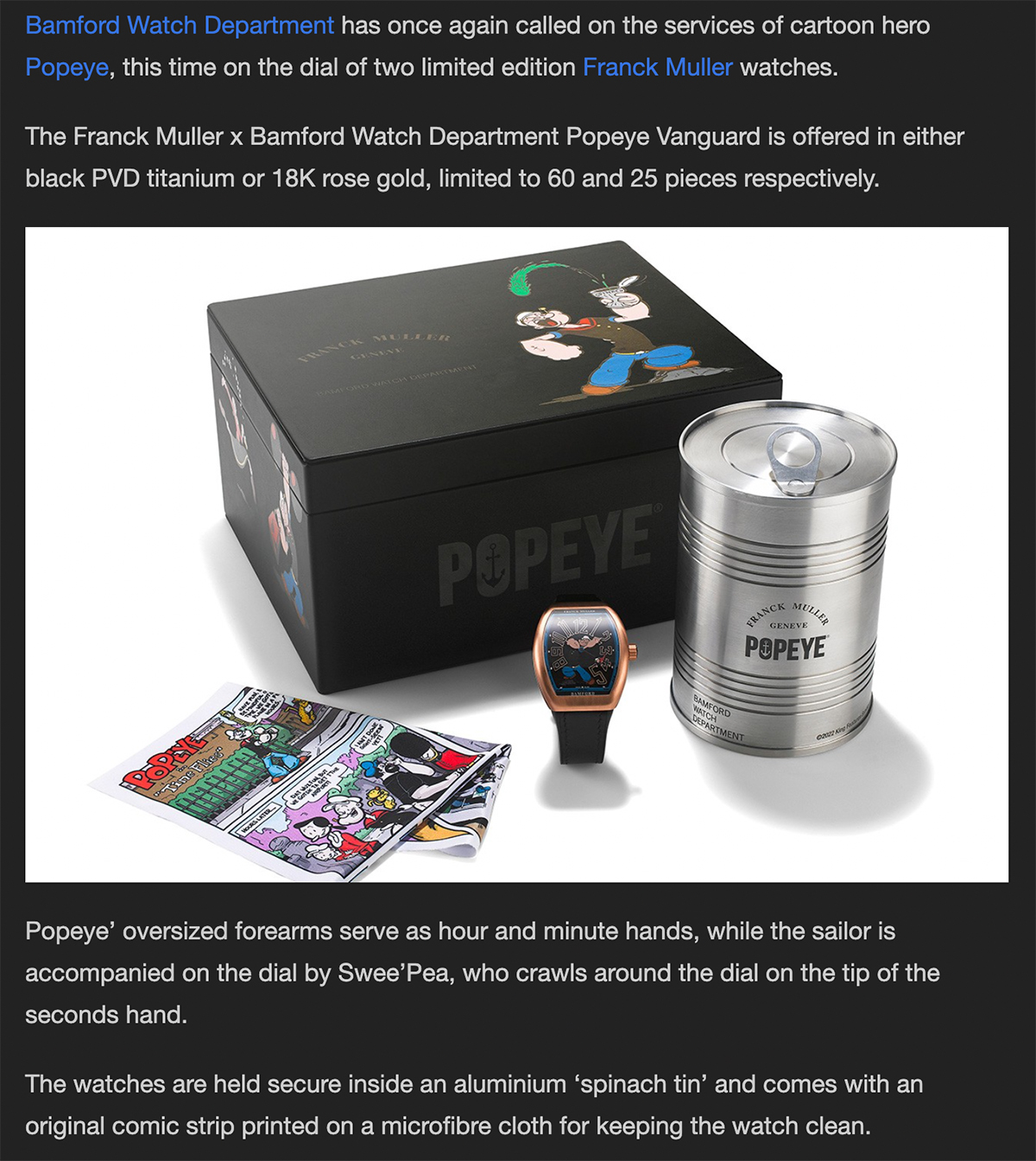 READ FULL ARTICLE ONLINEPublication: Hypebeast Date: October 2022 Title: Bamford Watch Department Brings Popeye to Franck Muller’s Vanguard Click to View Hypebeast: Bamford Watch Department Brings Popeye to Franck Muller’s Vanguard2022-10-172022-10-17/wp-content/uploads/2024/06/bwd-logo-icon-1.pngBamford Watch Departmenthttps://www.bamfordwatchdepartment.com/wp-content/uploads/2022/10/hypebeast_14-ct-22-1.jpg200px200px